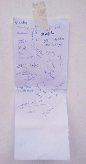 May naging activity si ma'am na may sulatan ng kung ano ang impression mo sa isang tao. Hindi po totoo na "quiet" ako hahahaha e' tahimik lang talaga ako dahil wala naman ako ganoon ka-close na marami. Hindi ko naman kukunin ang Pol Sci na maraming speech subjects kung tahimik ako hahaha at kung makikilala niyo pa ako, siguro ayon, mag-iingay rin ako hahaha at maingay na ako these past few days with some GIP pero hindi gano'n kaingay sa Twitter (sobrang ingay ko talaga doon) hahahaha! At natutuwa naman ako na may nagsulat ng 'gentleman', well, kailangan 'yan dahil para mawala na ang hinala ng marami na lalake na lang ang laging mali. :p HAHAHAHAHAHA!!!